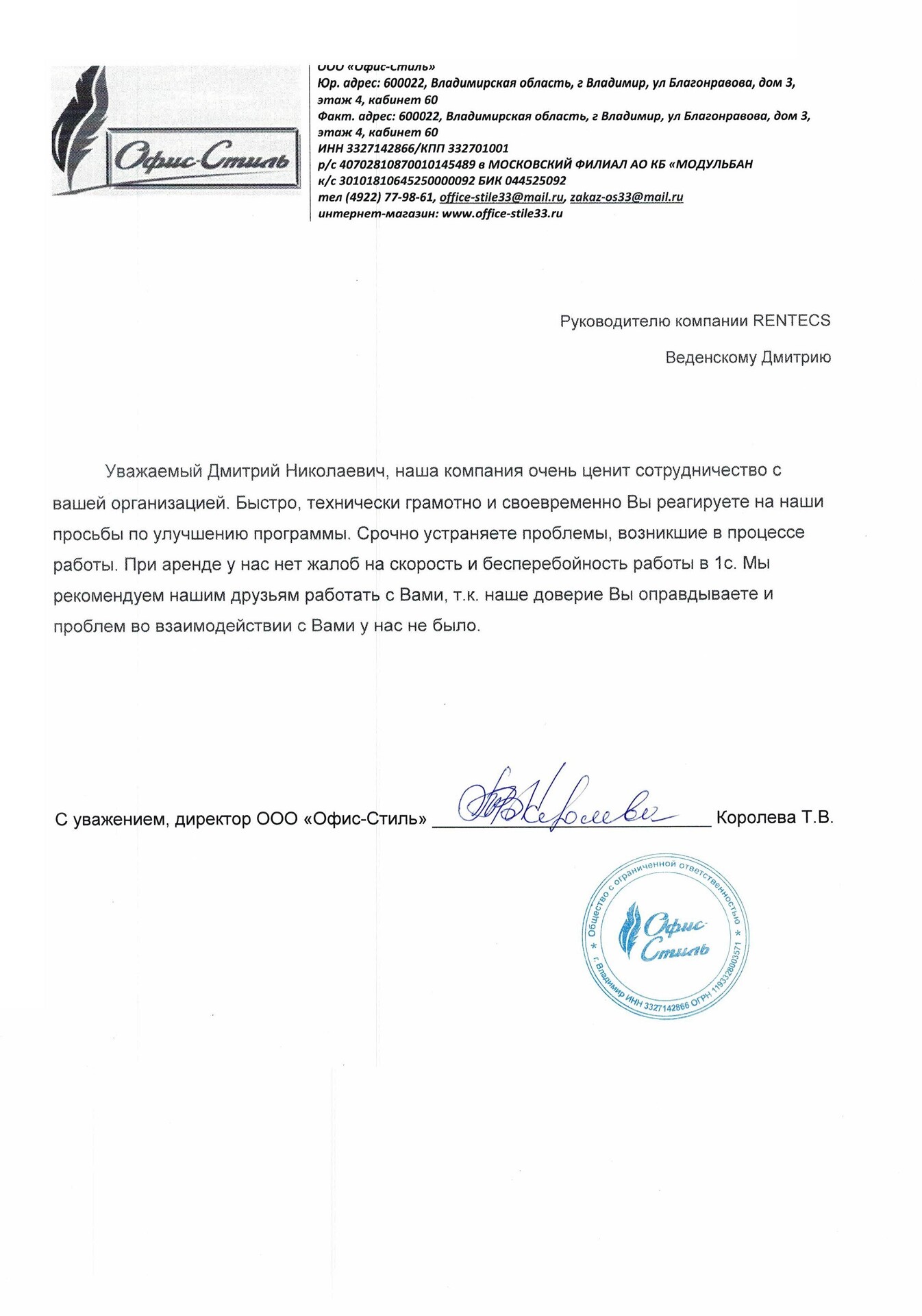 Ценю вас за профессионализм и отзывчивость. Иметь дело с такими как Вы одно удовольствие. СПАСИБО!!!